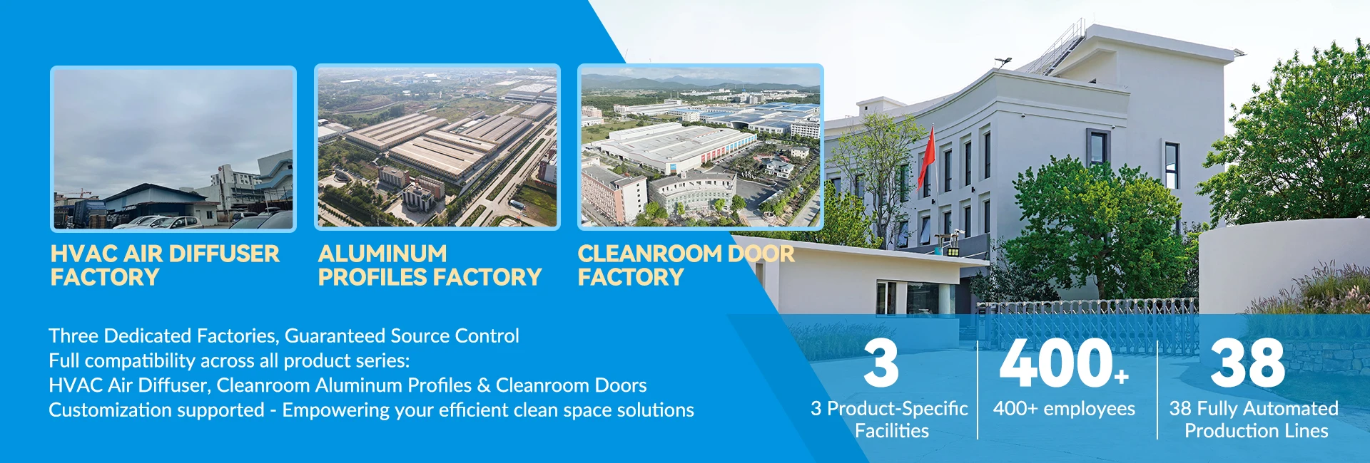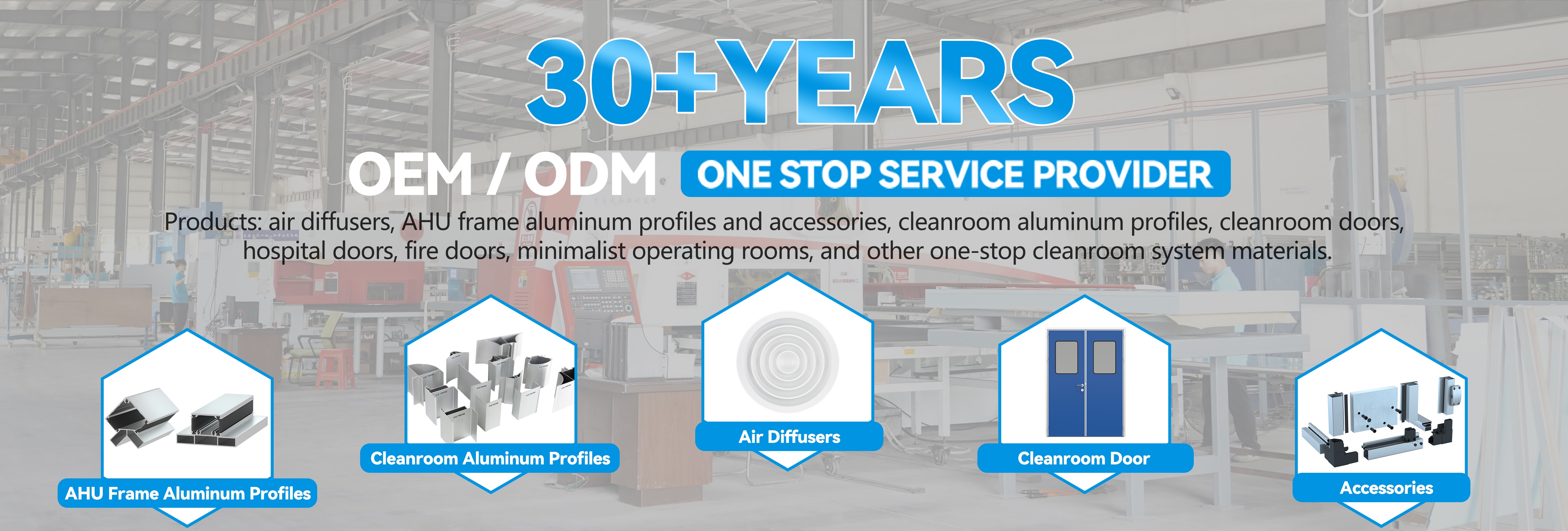 主な製品:クリーンルームアルミプロファイル、ahuアルミプロファイル、hvac空気ディフューザー、クリーンルームドア、病院ドア